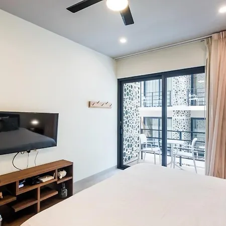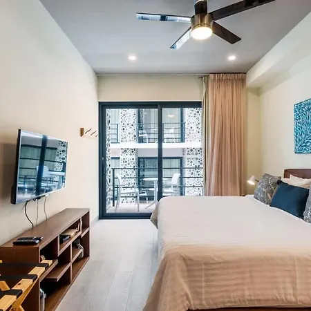 Denne ferielejlighed ligger i Centro område og er også tæt på Xavage Park by Xcaret. Sushi bar Samurai Japanese Restaurant kan man nå på 25 minutters gåtur. Du kan komme til Punta Esmeralda Strand om et par minutter i bil.
